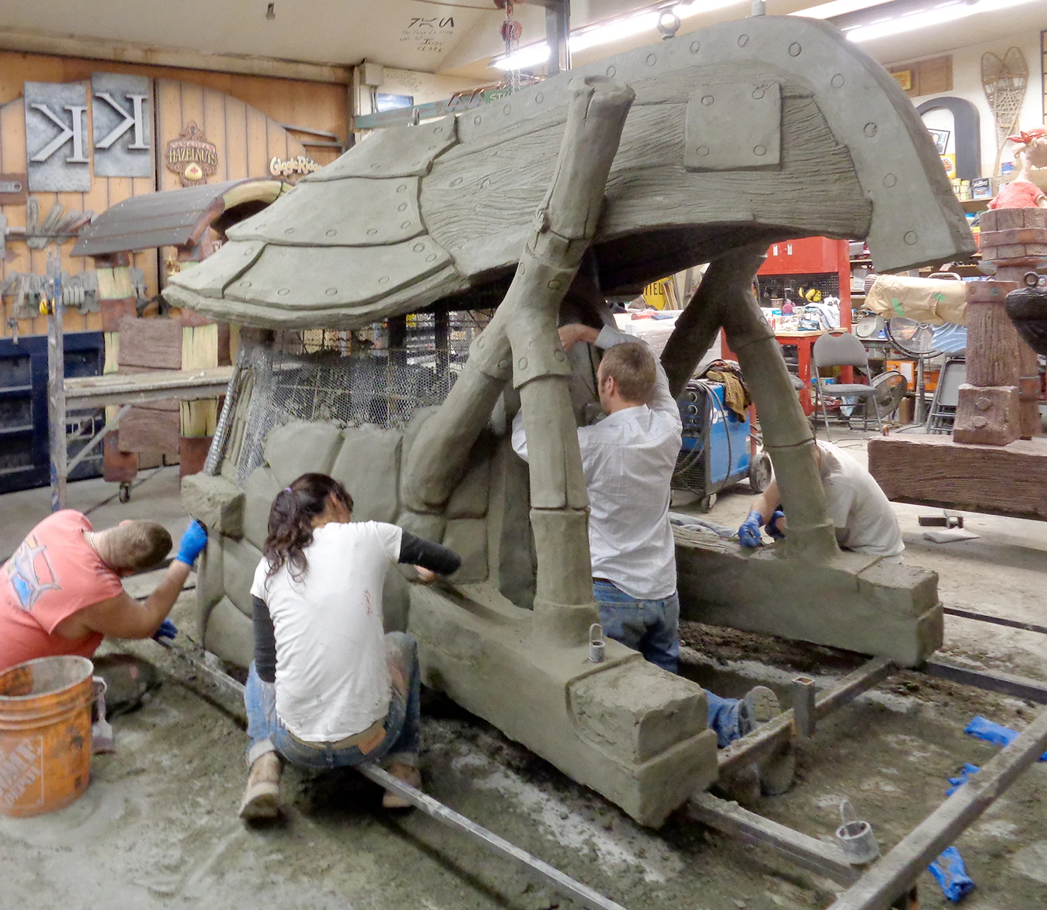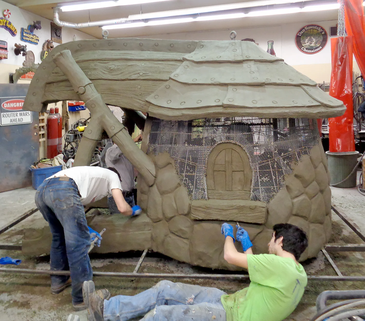 With Christmas quickly approaching the push is on to sculpt the last few pieces of the year. Today the crew, led by Peter would tackle the sculpting of the Dingy House. They managed to sculpt about 3/4 of the building leaving only the top broken plaster section.