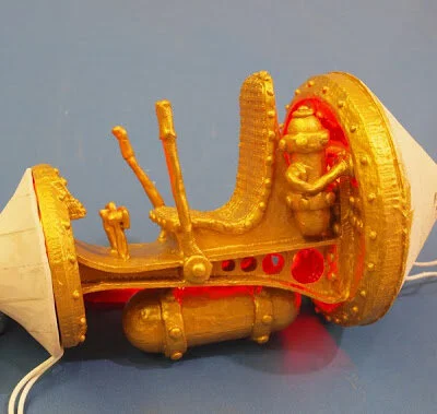 To sculpt the barnacles dad use a custom made tool — he breaks off the end of a paint stir-stick and then sharpens it like a pencil with a little flat point on the end. This is pushed into the center of each ball of sculpt and then used to push the edges down a little to create a rough texture.