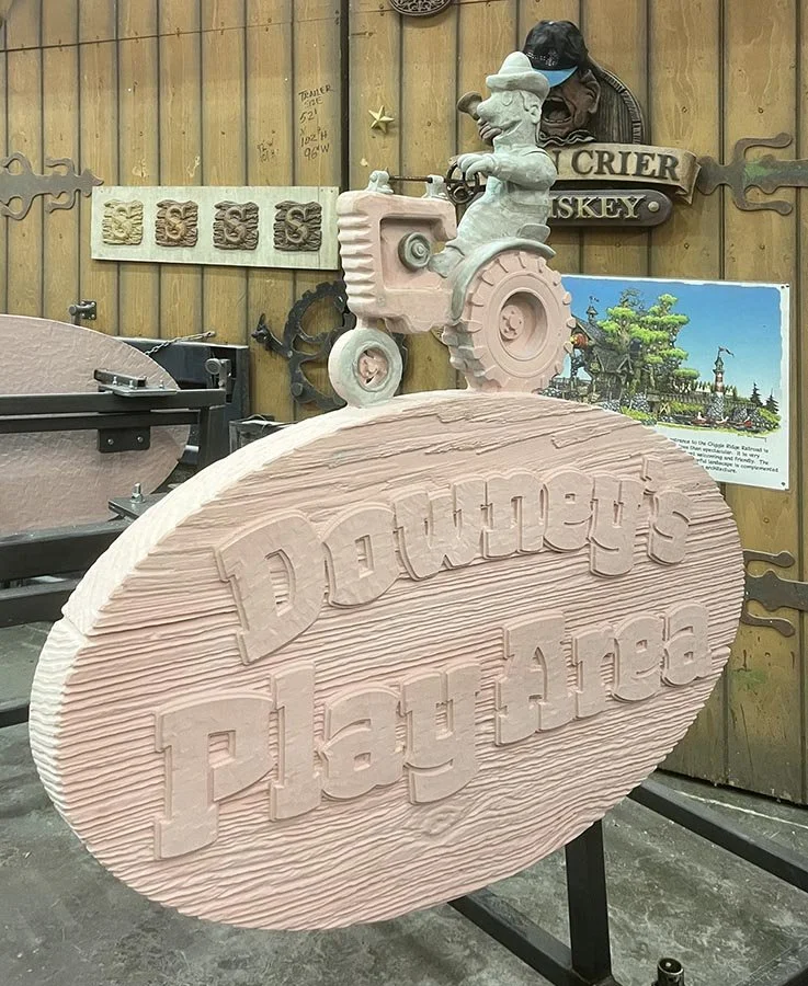 This morning, we wheeled the giant ‘W’ out of the shop to make room for the next letters to be fabricated. The letters will still get a pencil rod armature welded into the front space, and then we will hand-sculpt the woodgrain inserts. We are making great progress and look forward to picking up where we left off after the long weekend. Stay tuned…