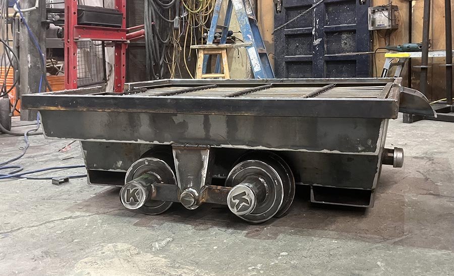 We built a giant waterwheel for Kraay’s Family Farm two years ago, which they use to bring water to the gem mine flumes. Guests use screen boxes in water in the flumes to separate the gems from the sand. This sand currently washes down and into a pond. The owners have asked us to design and fabricate three mine cars, which will be located at the bottom of the flumes to catch and separate the sand from the water. These would make it easy to dispose of the sand by transporting it with a forklift rather than digging it out of the pond by hand. The mining carts are built extra sturdy to withstand rough handling and have two forklift holes built into the carts to allow for safe and quick transport.
