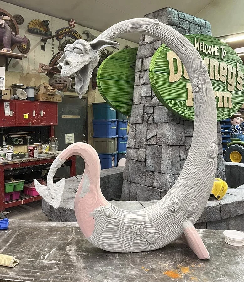Most projects I dream up start as small, simple ideas, but as I start designing, things seem to instantly grow, sometimes out of control. As I draw, new ideas pop into my head, and I know if I don’t include them, the project won’t be nearly as much fun or cool as it could be. The same thing applies to scale. This year’s Sign Invitational entry was theoretically supposed to fit in a suitcase to transport it to the ISA show. But as I thought of how it might be treated by the baggage handling equipment as it went through luggage at the airport, I thought it would be better to send it via freight instead. Suddenly, weight and size weren’t nearly as critical, and without even trying, the pieces I am creating began to grow even more. It didn’t seem like much at first, but things may actually have gotten a little out of hand over the last few months. Another custom sculpted piece I recently sent down to the US was built around a crumpled tinfoil armature to make it lightweight. But customs folks must have put it through their X-ray machine and couldn’t peer into the center, so they smashed the little sculpture into many pieces, found nothing inside, wrapped it up again and sent it to my customer. I didn’t want a rerun of that scenerio and that meant there would be no lightweight tinfoil center, and so I used laminated Precision Board HDU blocks to build the armature. Of course, the heavier weight of the armature meant a heavier welded steel armature frame inside. The now much heavier weight of the piece made me once again reconsider how I would ship it. My original thought of packing the pieces with lots of bubble wrap surrounding them now doesn’t seem like nearly enough to protect the signs. So it was back to the drawing board. As I was fabricating a sturdy welded steel mount yesterday for inside the now rather large shipping crate, the simple frame turned into a fancy, full-blown welded framework that will hold the sign upright during transport. It looked so good, I gave it a rattle can paint job. As I studied my marvellous creation, I decided this shipping frame could act as a display stand with the frame perched on top of my shipping crate. I’ll have to build that extra fancy as well. I love how a well-thought-out plan comes together! But the thing is, my entry is now so heavy I’ll have to ask one of my competitors to help me lift my pieces out of the crate to set up the display. I can hear the protests already…