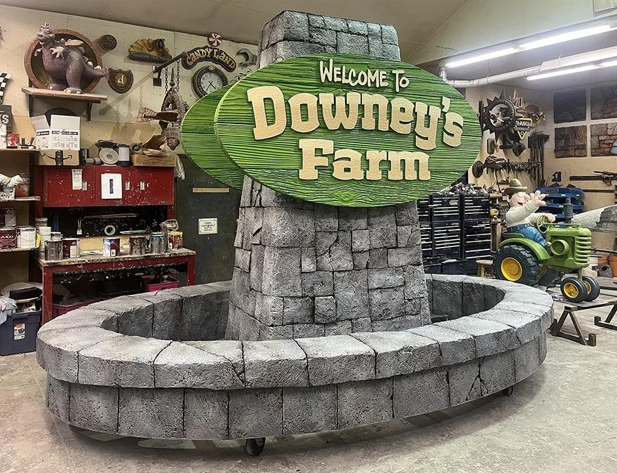 Jay did a masterful job applying the final blends and glazes on the Downey’s Farm base. planter and sign. It is now finished and ready to ship in the New Year. In the meantime, Jay will finish off the final paint on the tractor and mascot that will be perched on top when it arrives in Ontario. Three other signs in this order will soon be underway, as well as some other projects currently under design. Stay tuned…
