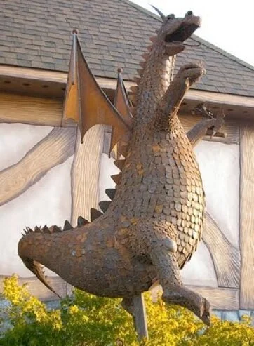There’s a twelve foot dragon that lives just outside our workshop. He’s made from thousands of small bits of recycled steel from our scrap pile - all welded together to form the scales. After I designed him I showed the drawing to Janis and she instantly approved. She called him the twitter-pated dragon... a dragon in love.