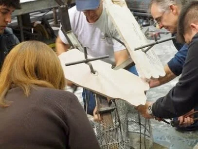 Since this was to be a workshop project I expected lots of help as I was working. And lots of help I got! The next step was to add the galvanized mesh, bulking out the armature in preparation for the actual sculpting. This is a job most people do not enjoy as it is rough on the hands with plenty of sharp edges. We keep plenty of bandaids handy.The mesh is tied to the pencil rod with rebar wire. We use special tools designed for the job which grip the wire and then trim it after twisting. It’s a job that looks easy but (like most things) takes some time and lots of practice to master.