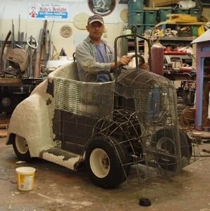 The car took rapid shape, first with structural steel and then with the armature and sculpting medium. As you can probably tell I enjoy the entire process.