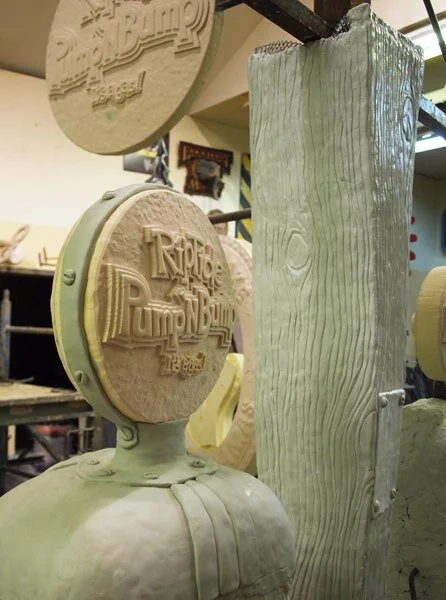 Good cartoon work is believable. That can only happen by studying and knowing what things look like in real life. With this project it was fun to dig through my library and study old gas pumps. I didn’t copy any specific model, but took the features I liked and combined them. The screws and bits of trim will make this piece - especially as we add the paint and aging glazes.
