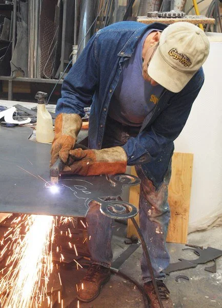 I get to play with the very coolest tools in my shop on a daily basis. One such tool is my plasma cutter. I started fabricating the bracket for the Vedder Mountain Grille today. I needed a motorcycle cut out of a plate of 3/16” steel. No problem!