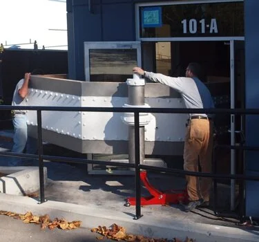 Moving day is always exciting. Today it was time to move the large reception desk from our shop to the MultiCam office. The desk was large - very large. It had to fit down a narrow sidewalk and then trough a double set of doors - easy