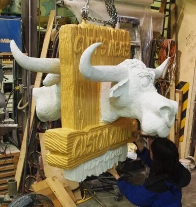 The meat market sign has been pushed off to the side for a few days while we met some other tight deadlines. Now it takes center stage once more for the painting process. First came a couple coats of primer and now we start in on the fun part... COLOR!