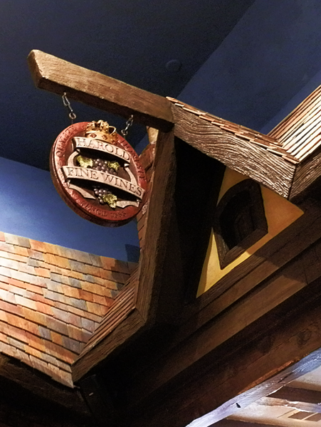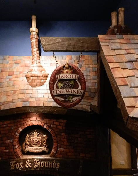 While I was at the pub, I also climbed my giant step ladder (which I had brouht) to hang the Harold Fine Wines sign. This finished off this area of the pub nicely.
