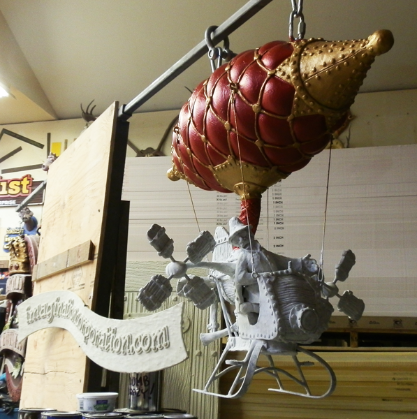 Tonight I snuck back out to the studio to turn off the router which I had set in motion before supper. While there I couldn't resist putting a little paint on the balloon. It is looking pretty snazzy sporting it's bright red paint with gold trim. Tomorrow I'll start in on the glazing and then we can begin working on the bottom section.