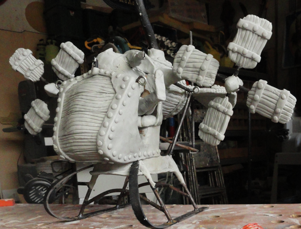 I did a few more sketches as I got serious and then welded up a sturdy steel frame to act as an armature for the hand sculpted part.
