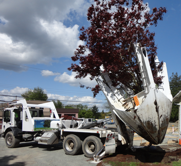 Brad Sakiyama and his big white custom tree moving rig made the task seem like magic.