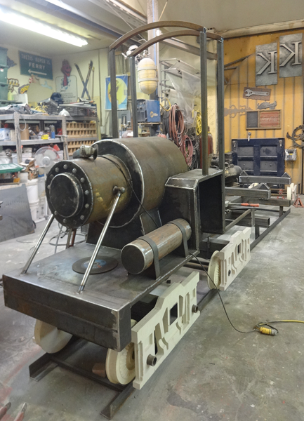 As with the Shay geared locomotive, the log car requires LOTS of steel fabrication. Today we welded up the sub structure, similar to the locomotive. The heavy angle iron along the bottom will be bolted to the top of the trestle to keep the train up there - no matter what!