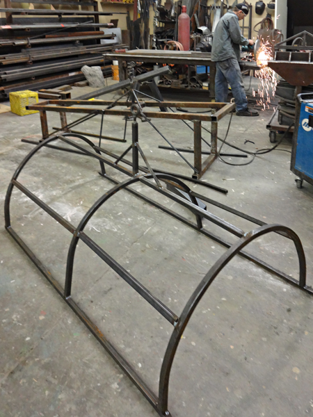 There was lots of things going on in the shop today. I was designing things for the router. Little Matt was welding up a storm on the structures for the log features.