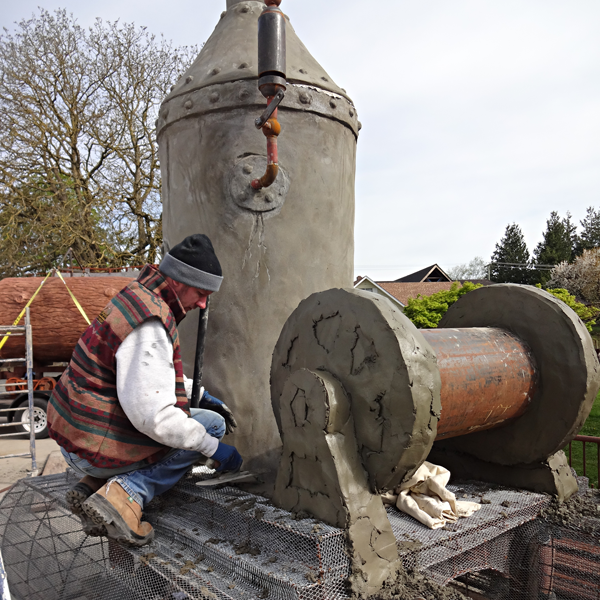 Out in the parking lot big Matt and Peter did the detail concrete work on the steam donkey.