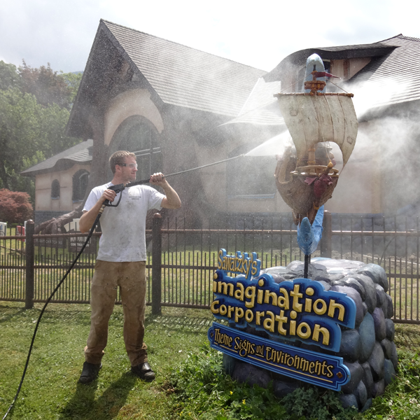 Today I had to go into the city to pick up all kinds of supplies for a project unerway in the shop. While I was off to the big city the crew had a wide variety of tasks to complete. One of Matt's projects was to take a little time to pressure wash all the signs in the front yard. With all of the construction dirt plus the accumuation of the normal winter gunk the signs needed a good cleaning - especially our primary sign with the ship.