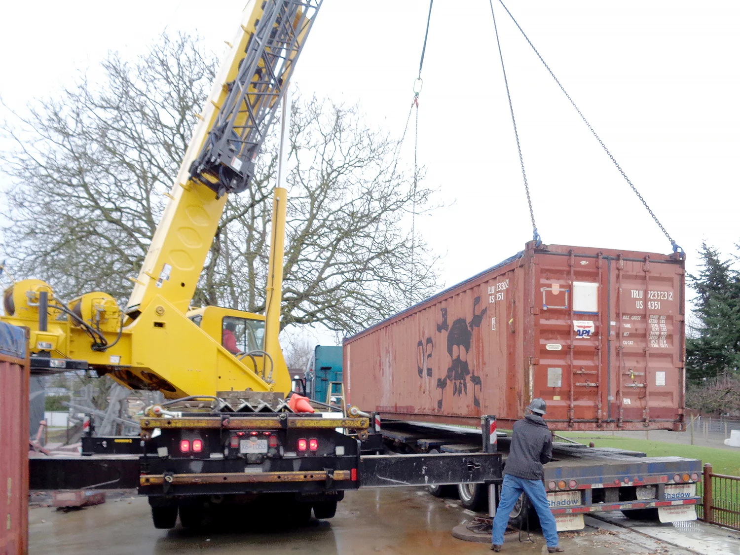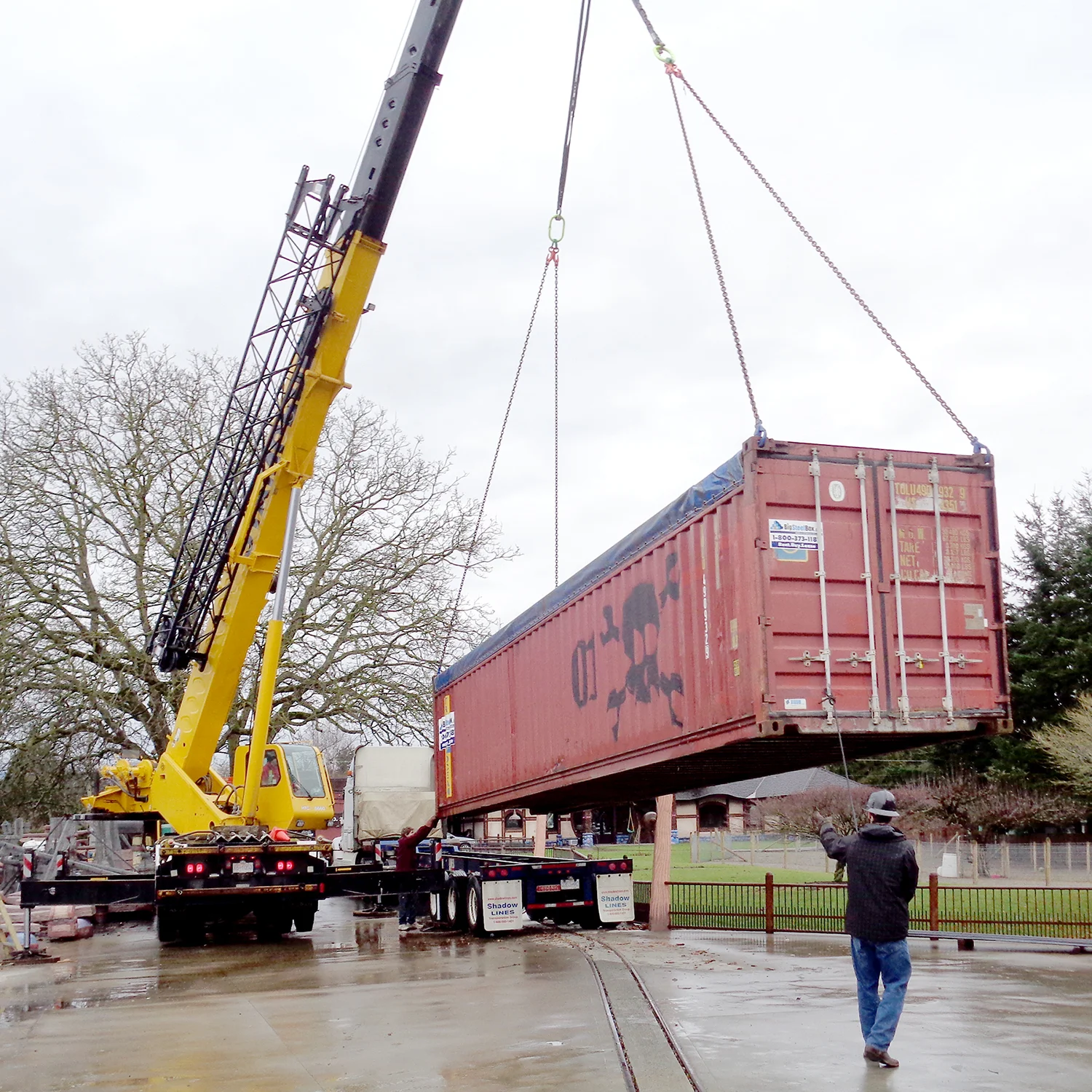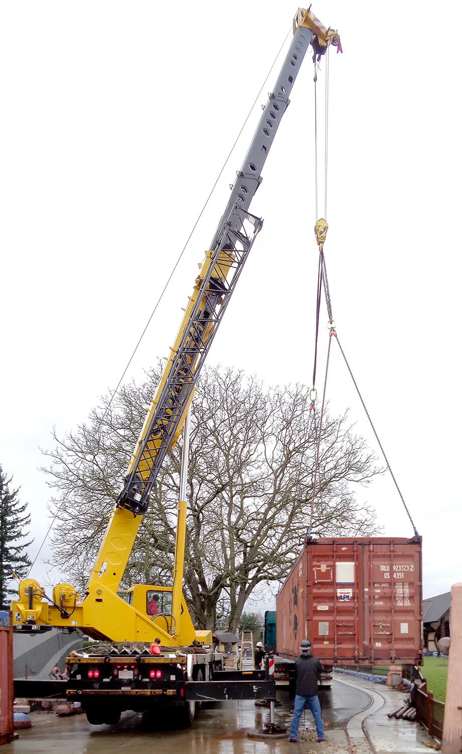 It is always exciting to bring in a crane and lift a feature into place. To lift three containers FULL of features all in one day is much more so.