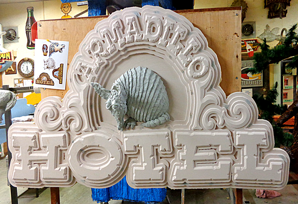 With a little help from Peter I also did the armadillo for the hotel sign. He turned out pretty cool.