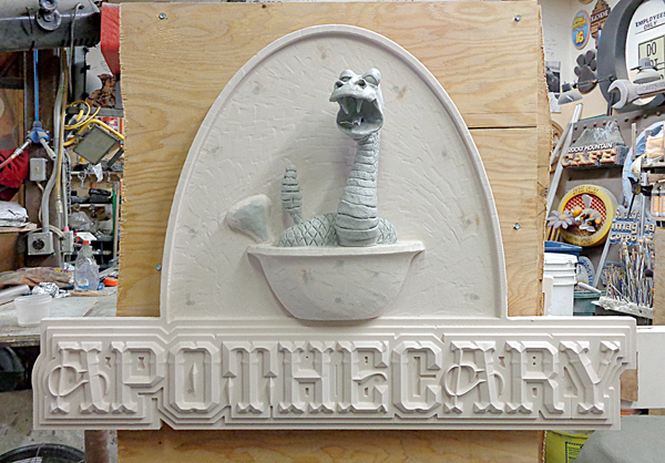 I was busy sculpting two smalller pieces. The first was the snake for the Apothecary sign.