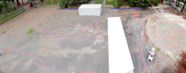 Here's a shot from the snorkel lift back last July. We are at the full height of it's reach. The lines for the proposed attractions, pathways and buildings are sprayed out in pink paint on the ground.