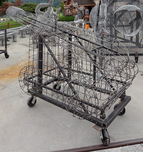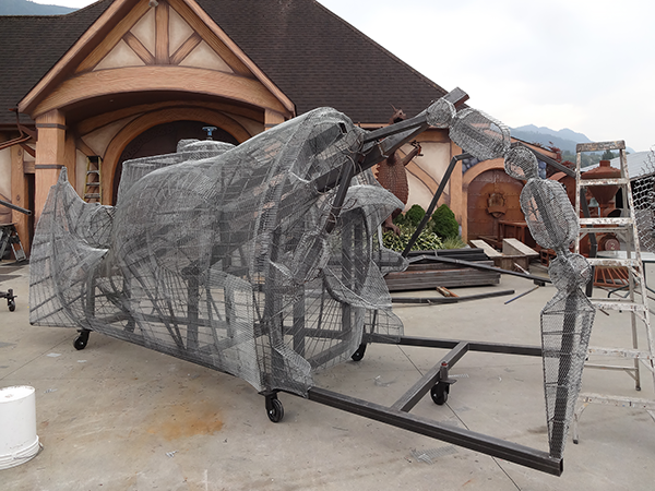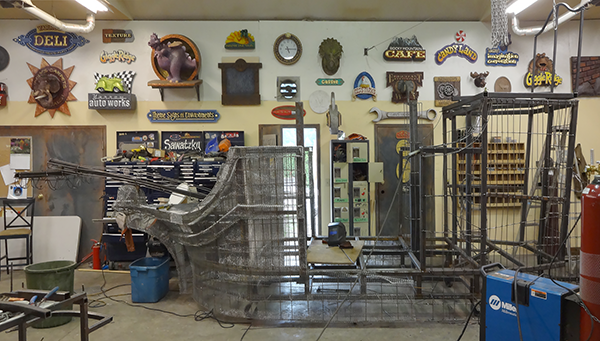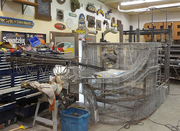 We continue to weld as much as we are able each day and right behind us the wiring crew are attaching the lath to everything we push out of the big magic doors. They polished off the bulk of the KRAKEN today. It looks much more solid than before.