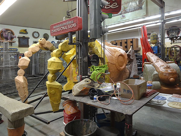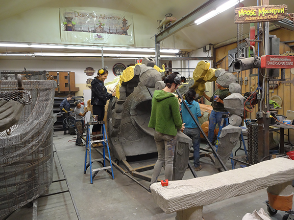 It was a busy day in the shop with plenty of action happenng on many fronts. With the KRAKEN, a tall ship, a cannon and some smaller pieces in the shop there isn't much room to move around. Thankfully, each member of the crew works well together and they make it work, despite the cramped quarters. The push is to get the big pieces out of the shop no later than Wednesday afternoon of next week so we can set up for the first fall workshop on Thursday.