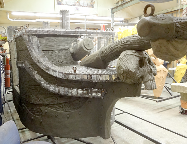 The starboard side od the ship recieved the bulk of it's concrete mud and was sculpted today.