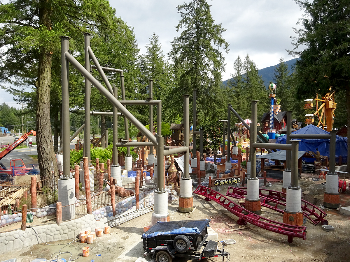 The uprights for the coaster are now all in place with the coaster track itself to follow in the next few days. The coaster crew was busy placing the track in preparation for the lifting crane that arrives tomorrow morning.