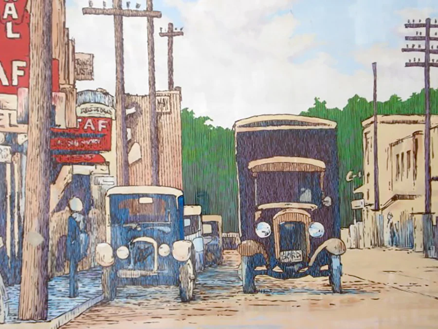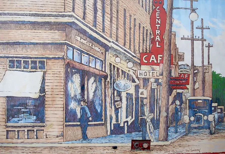 Twenty-one years ago Peter and I ravelled to Oshawa, Ontario to paint a historical mural. It was a fun project. In the mural are many hidden messages. Look close in the window on the left hand side and you will see the Starship Enterprise. One of the signs sports the words Janis turns 40! Other signs and licence plates have initials or names of family and friends.