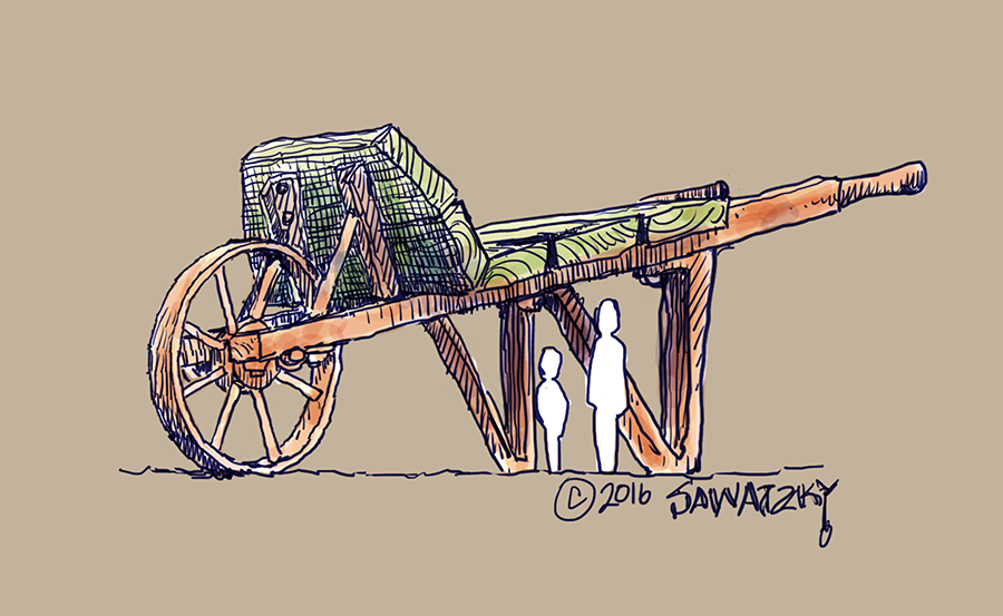 As we continue to work on the preliminary concepts of our next large project one of our primary concerns is establishing the scale. We are proposing a garden scape where fairies are living. To properly involve our guests we want to shrink them down to this same scale. The question is 'What is that scale?' We've settled on one sixth normal size, meaning a six foot tall person would be one foot tall in this world. To properly tell this story we then have to stick to this measure. Human objects will be much larger than normal. Things built by the fairies and other creatures living here will be their scale. That left us deciding a list of features to incorporate into the landscape. Building and transportation realities will determine the final list. With this information at hand I did two more fun concept drawings today.