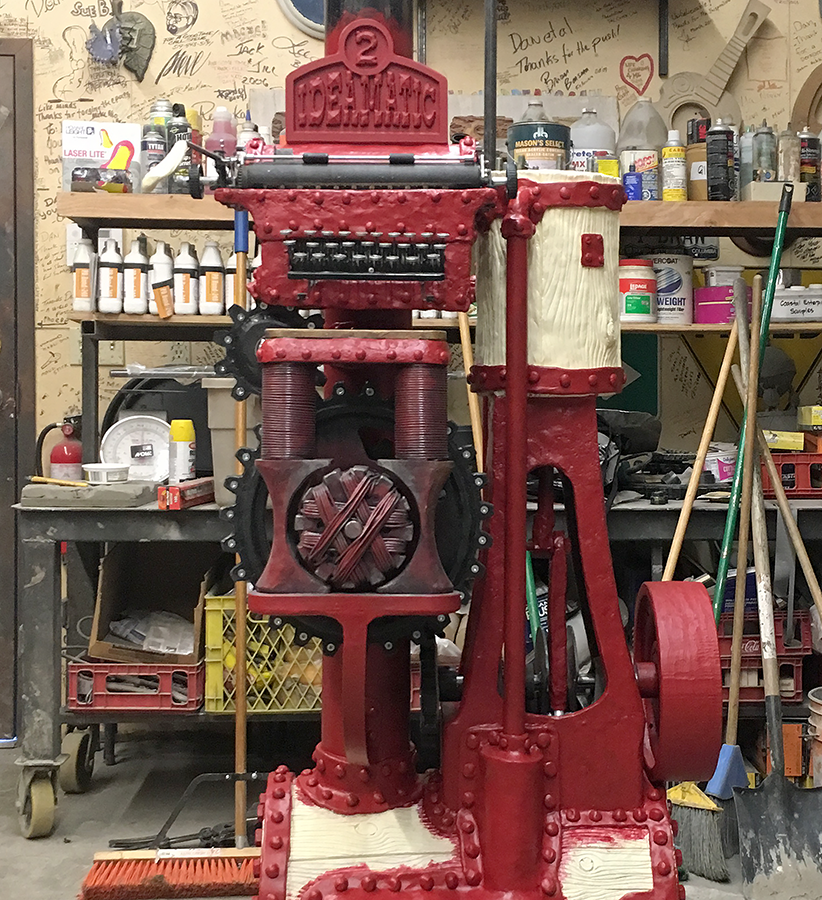One of the awesome things I love about having a well equipped shop is that we can fashion just about anything we can imagine. On a piece like my Sign Invitational entry I design on the fly, creating custom pieces as needed. Layer upon layer of detail is possible and a whole lot of fun to create. Signs, brackets and all manner of bits and pieces are easily designed and then fabricated, some by hand, some with the help of our fancy CNC machines. Yesterday, Janessa started laying on the base coats of paint and the MARVELLOUS MACHINE came to life in an instant. Over the holidays I'll spend some time beginning the aging process. This piece is getting more fun all the time! Stay tuned...