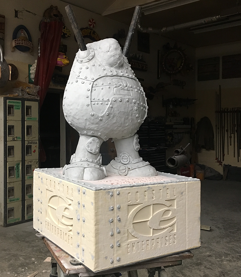 I spent a little more time in the shop this afternoon working on the Coastal Enterprises robot table. I managed to sculpt the bulk of the body, Instead of rivets I decided to model slot head screws as fasteners, to give the little robot more of a retro feel. We've actually banned slot head screws from our shop years ago and replace them when we come across them in an assembly. I should be able to finish the bulk of the sculpt tomorrow if all goes well. Stay tuned...