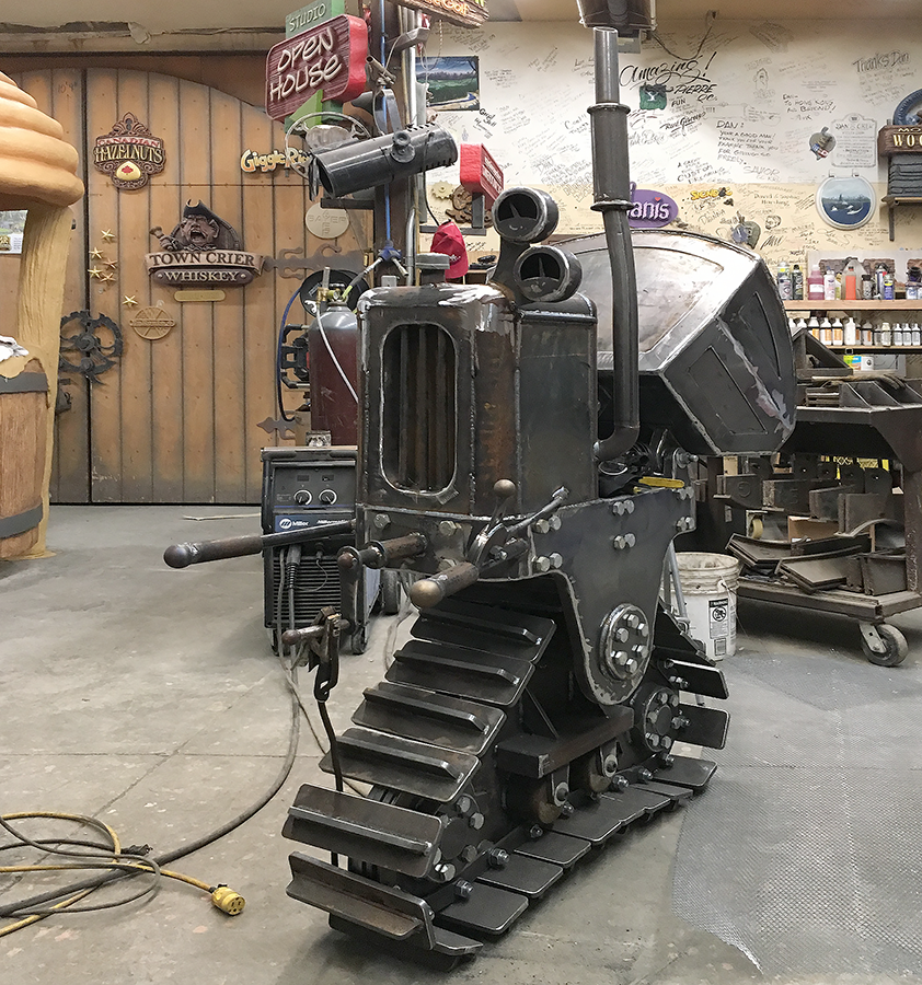 I worked on the little tractor a little in the afternoon today and and in that time finished the handlebars, and fabricated and mounted the engine crank, muffler, gauges and throttle. Only a couple small things are left before we declare this little gem ready for paint!
