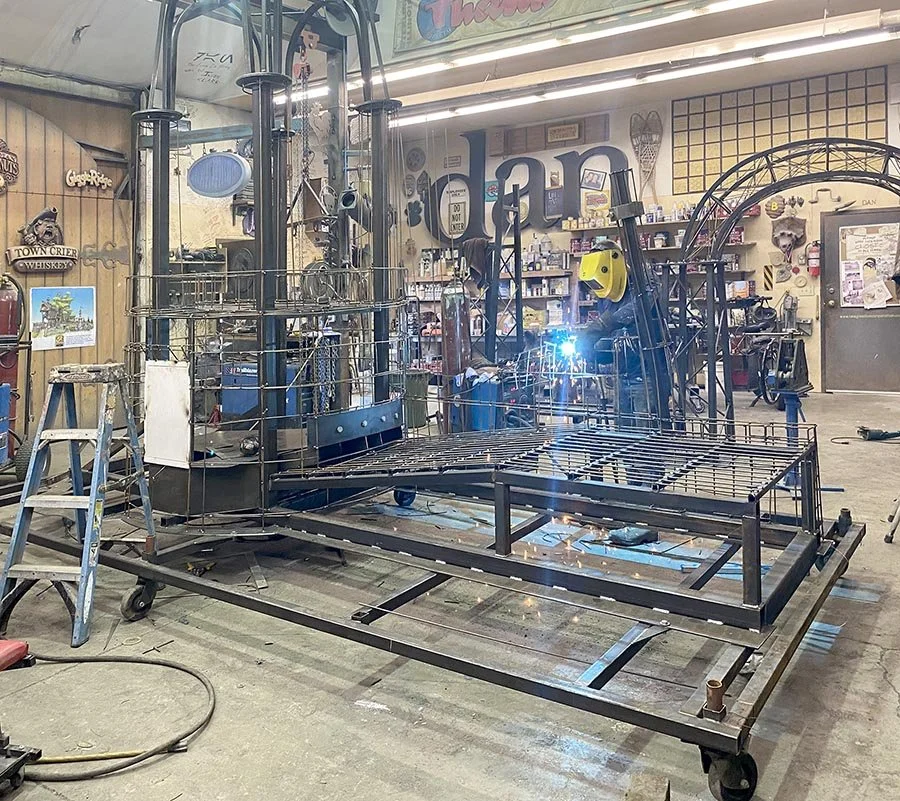 The Jade City wishing well is coming along nicely with Peter taking the lead. He has roughed in most of the lower sections and is now starting on the armature details. It takes a good understanding of the finished vision and a practiced hand to cut, form and weld the 1/4” pencil rod into the myriad of shapes. We have also learned to build the armatures undersized to allow room for the galvanized mesh and the sculpting coat of concrete which will form the skin. If you squint your eyes right the final product is clear. Stay tuned as this piece comes together…