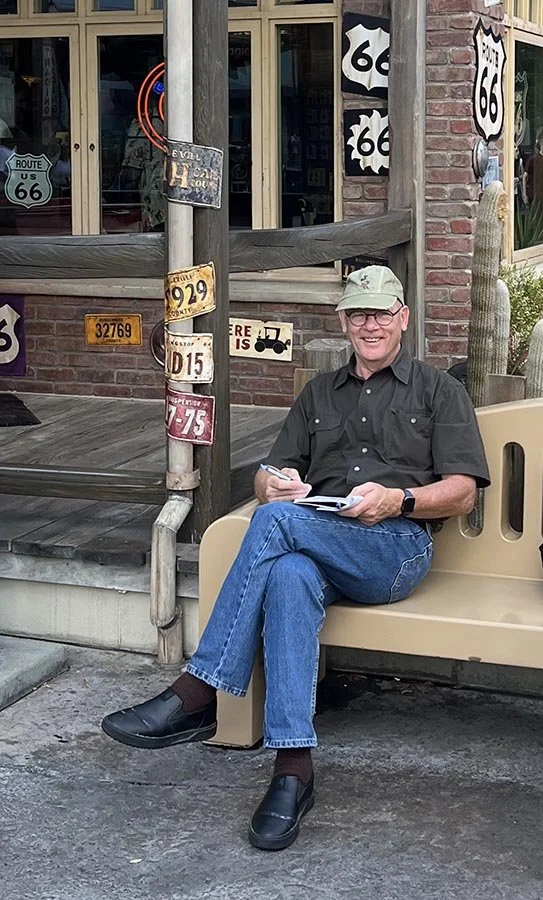 Janis & I do Disneyland differently than most folks. We like to get into the parks at a reasonable hour (we are on vacation). We spend the morning together, enjoying our favourite attractions. We then have lunch together and enjoy another attraction or two before Janis returns to the hotel for a break during the day's heat and busiest time. The afternoon is my chance to explore everything in-depth, see what’s new, take lots of photos and continue my education from the true masters of this craft. I’ve found that sitting on just about any bench in the park for ten or fifteen minutes and simply looking will allow me to discover things I’ve never taken notice of previously. My sketchbook is always at the ready for when I’m inspired to make a quick sketch or jot down some thoughts. I love to design in a creative place and Disneyland is just as good as our studio - even better with the warm sunshine! At supper time Janis returns to the park for dinner and then we are off enjoying more attractions through the evening. It’s the perfect combination of work and play - just like all of my days!