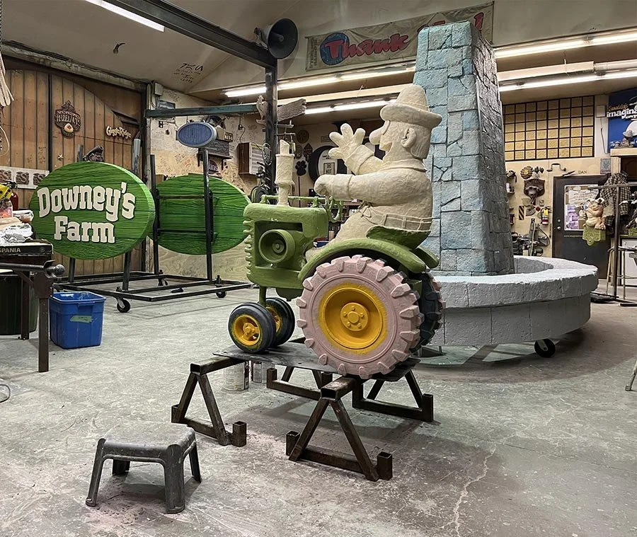 Every piece of the Downey’s Farm sign gets more colourful by the day as the paint crew brushes on the paint. The sign faces are down to the final blends on the letters, the sign plinth gets its first coat of glaze tomorrow, and the little mascot tractor and character will soon sport their first colours. Stay tuned…