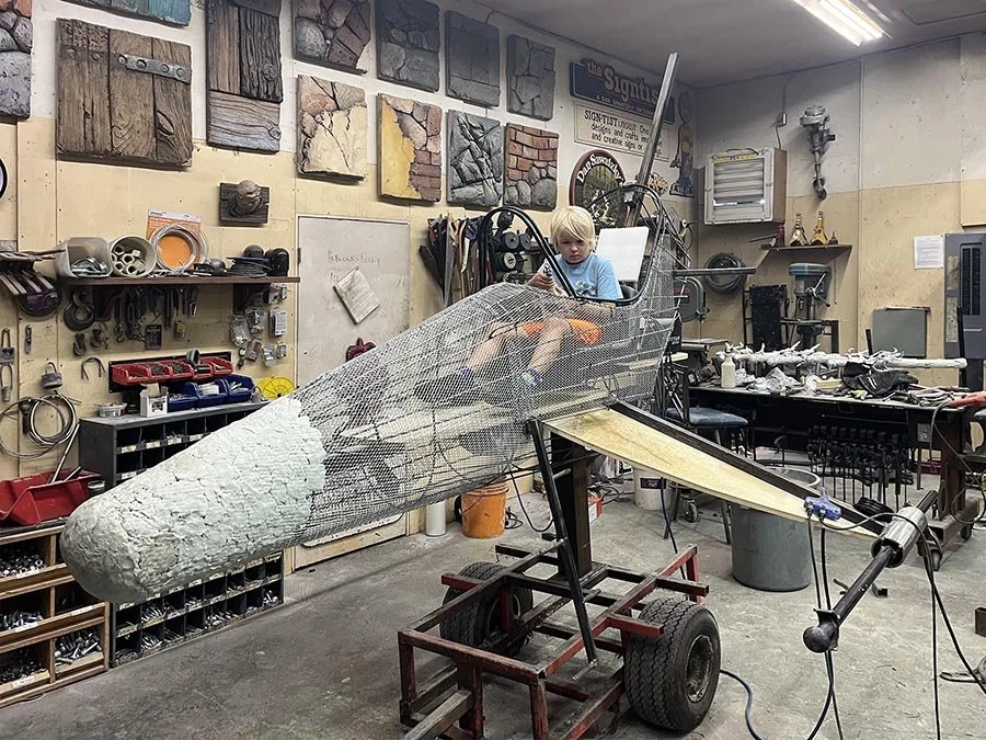 Henry was delighted to hear I had purchased the gas struts to assist with the opening mechanism of his 2026 parade float plane’s canopy. With the struts in hand, we could begin fabricating the framework. We first went to the local hardware store to pick out a sturdy hinge. This involved cutting, forming and welding some tubing. As each piece was test-fitted, Henry would climb into the cockpit and test the fit. After each weld, he would climb back in again and spritz the hot area to cool it down before he test-opened the canopy pieces. By the end of today’s work session, Henry was pleased with our progress and a functional frame. Next, we’ll begin forming the flanges to mount the canopy plexiglass. Once that is done, we can get to mounting the gas struts. Henry is waiting as patiently as he can…