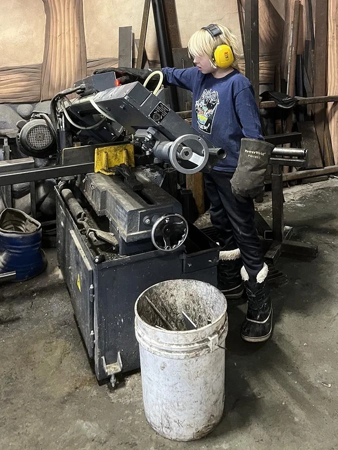 Henry was back in the shop this week and loves to help with all manner of tasks. One of his favourites is operating the steel band saw. Today, after school, he helped me set the next giant letter on the welding table for Downeys and then kept busy cutting the pieces I needed to begin assembly. Once we had done that task, it was time to work on Henry’s spaceship for the rapidly approaching Yarrow Days parade. Stay tuned…