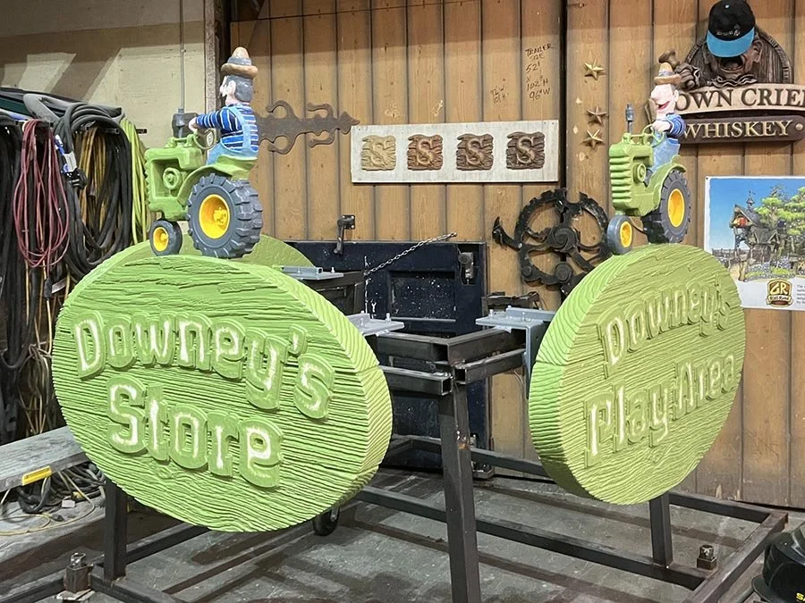 Downey’s projects currently dominate the shop, but the last giant letter will start tomorrow, and the three signs are now in the final stages of painting. Next week, these signs will be complete and pulled from the shop to make room for a wide variety of new projects for Vala’s Pumpkin Patch in Nebraska and Kraays Family Farm in Alberta. Stay tuned…
