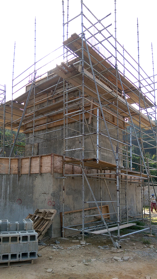 Until my next visit to Trinidad we watch from afar. I get regular updates and am in frequent communication via email, video conference and phone. It is exciting to see the structures going vertical in a big way. The main building's upper slab had just been poured on my last visit. Now the concrete tower portion is being built, We will soon build a giant climbing wall around it. The forms are in place for the second level with two more stages to go. The rockwork will tower past that height. A staircase inside will allow the bravest guests to climb to the top, hook into a harness and then jump fifty-two feet to the bottom. They will free fall about two thirds of the way down before being slowed by the high tech rigging.