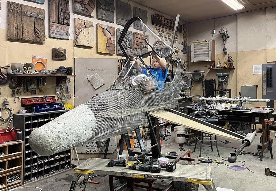 It was an exciting day for Henry as we worked on his jet parade float. Henry helped me carefully measure and cut the plexiglass and then screw it into position using self-tappers and fender washers. Once we had finished, Henry had to jump into the cockpit and test it, of course. He declared the working canopy his favourite part of the project. Next up, Henry wants to sculpt the jet engine and give the smoke machine another test. Stay tuned…